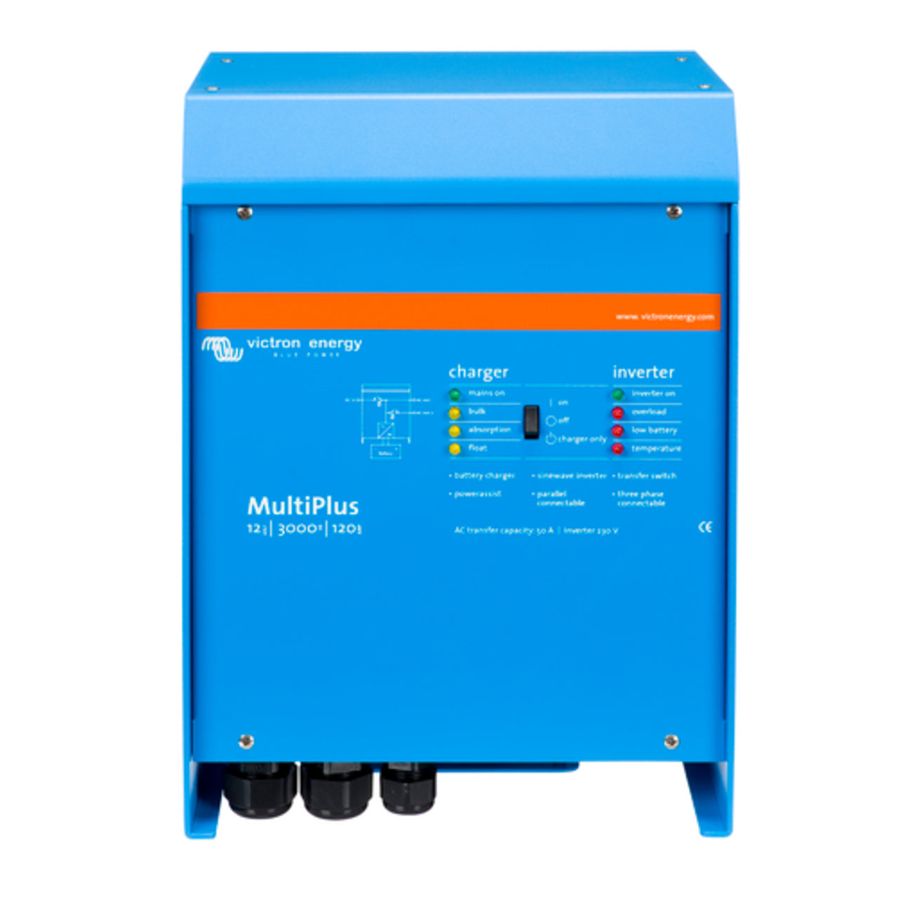 The Victron MultiPlus 12V / 3000VA / 120-16 also supports parallel operation, allowing you to connect multiple units to increase output power or to run a three-phase setup. Additionally, it comes with an integrated transfer switch that enables seamless transition between grid power and battery power, making it ideal for applications that require a reliable backup system. Its robust construction, combined with smart design features, ensures long-term reliability and easy installation.