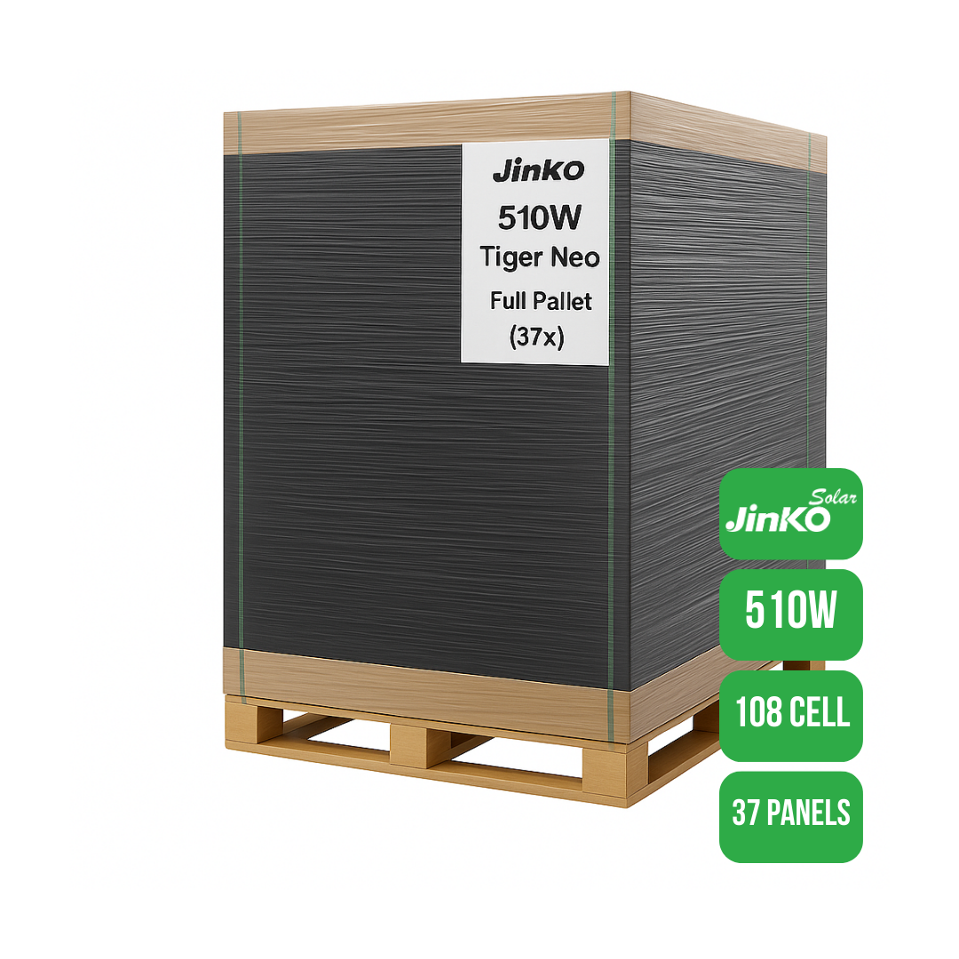 Looking to power a large-scale project or just want the best value for your solar setup? This full pallet of 37x Jinko 510W Tiger Neo 120-Cell Solar Panels is ideal for solar installers, off-grid homesteads, commercial rooftops, and large-scale off-grid systems. By buying in bulk, you get a significantly cheaper per-watt rate while securing one of the most advanced panels in the game.